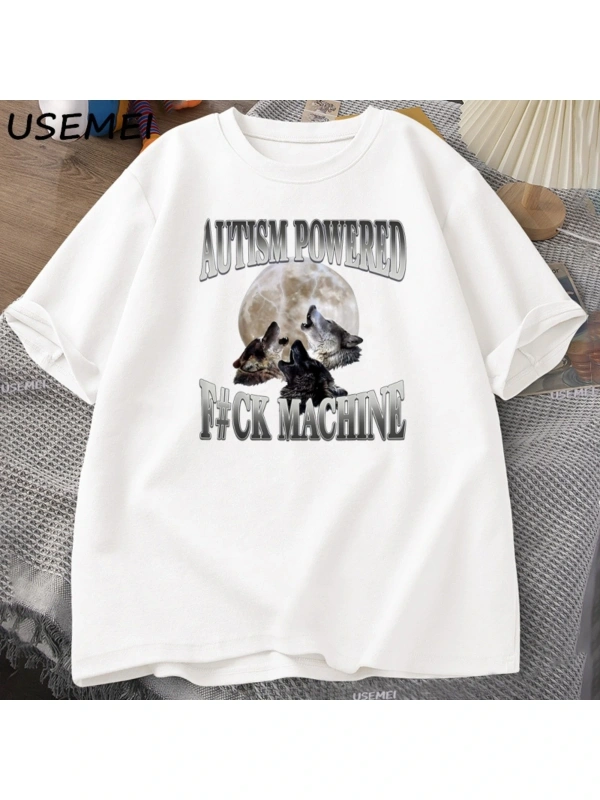 Powered Kurt Otistik TErkekler Retro Pamuk Kısa Kollu TeeCasaul Gevşek 2921