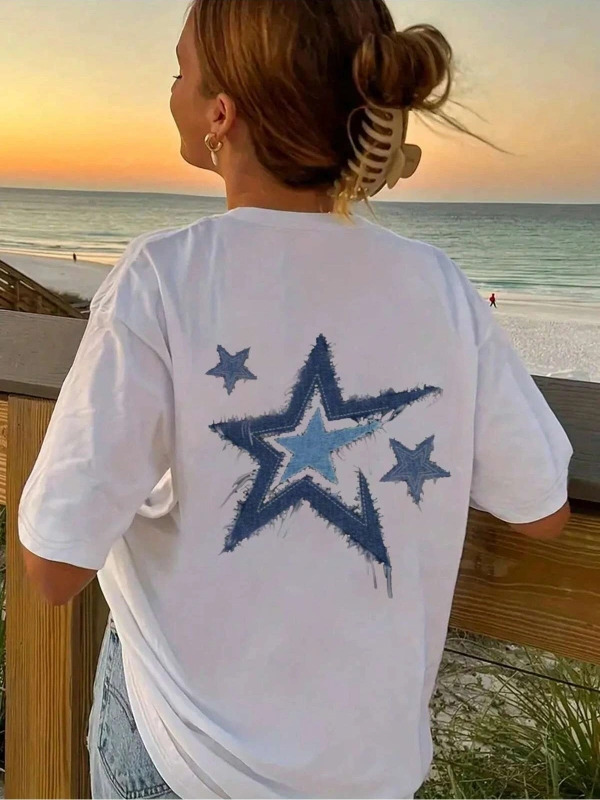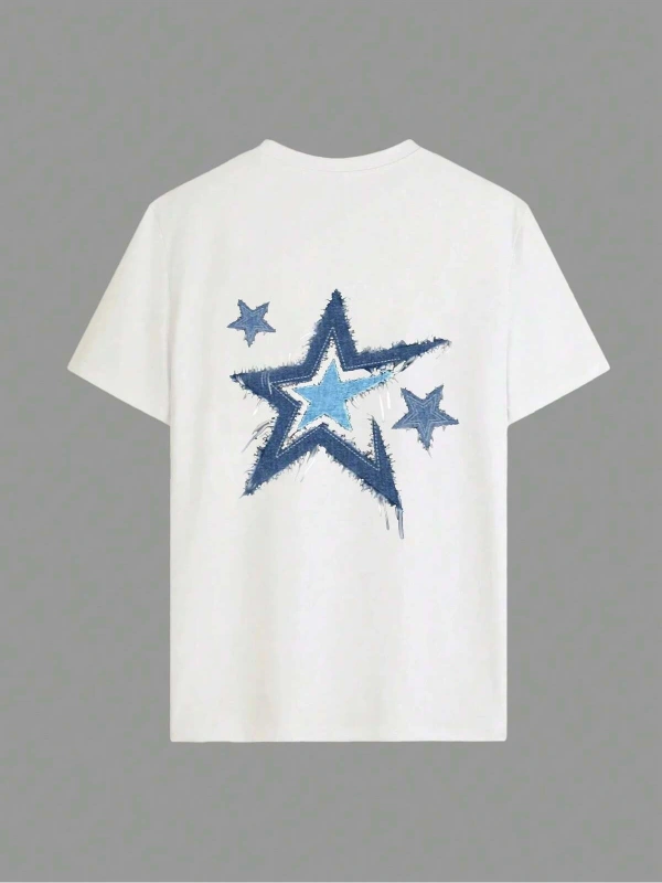 Yıldız Grafikli Yuvarlak Yaka Kısa Kollu Tişört