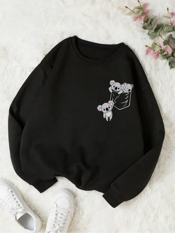 Coke serisi Koala Print Thermal Lined Sweatshirt