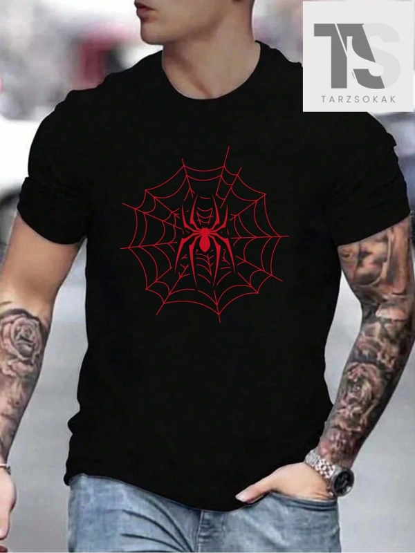Erkek Örümcek Ağı Baskılı Tişört