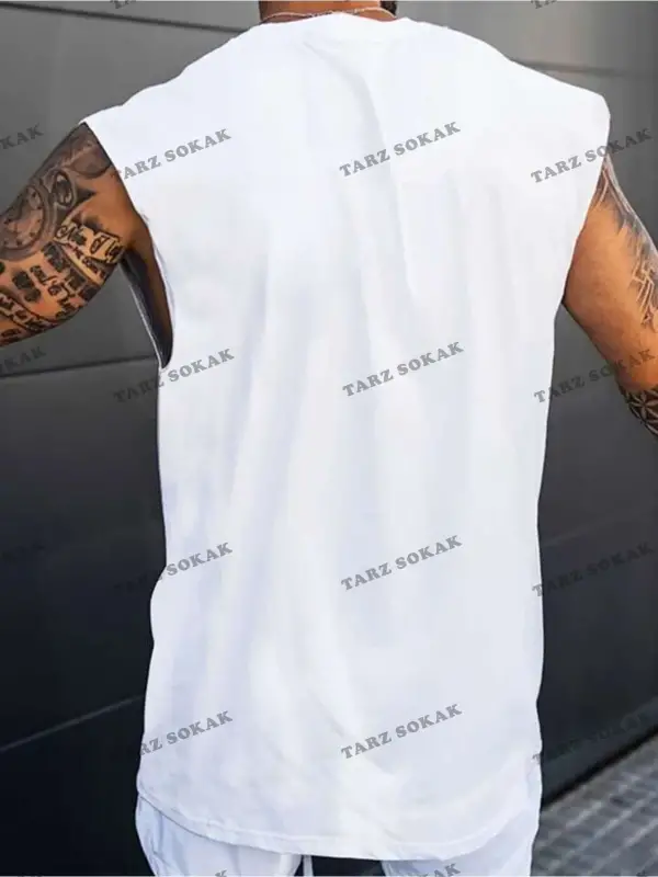 KOD Trend Street Life Erkek Slogan ve Yıldız Baskılı Damla Omuz Tişört