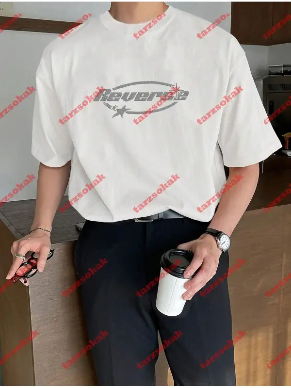 KOD Trend Street Life Erkek Çiçek & Slogan Grafikli Tişört