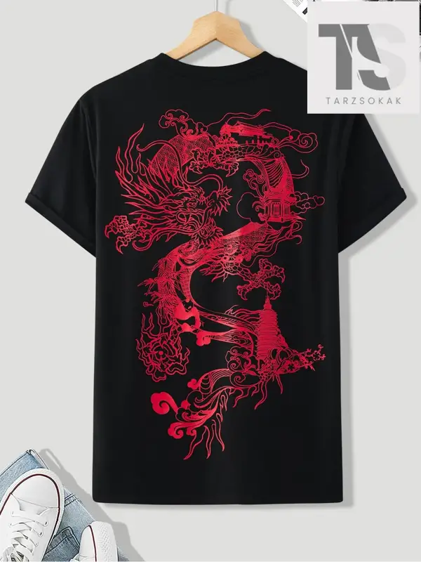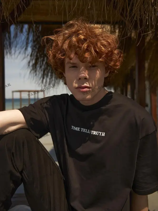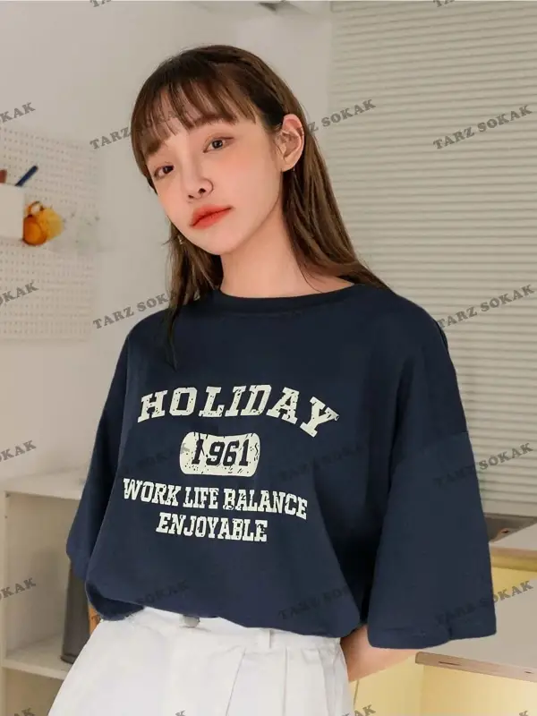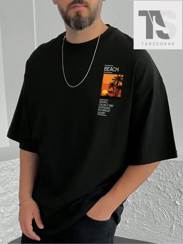 Erkek Oversize Baskılı Pamuklu Bisiklet Yaka Kısa Kollu