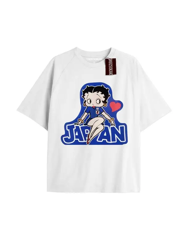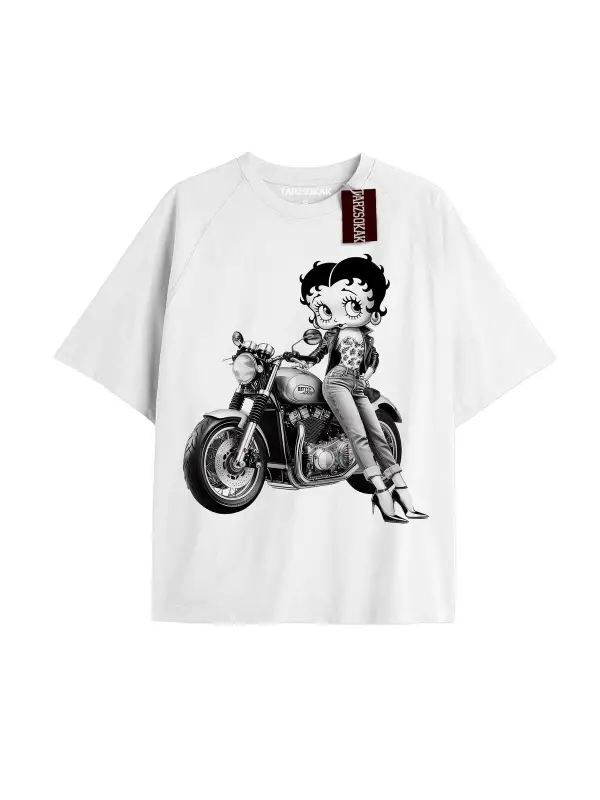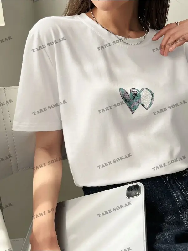 Kadın Beyaz Çift Heart Baskılı Oversize