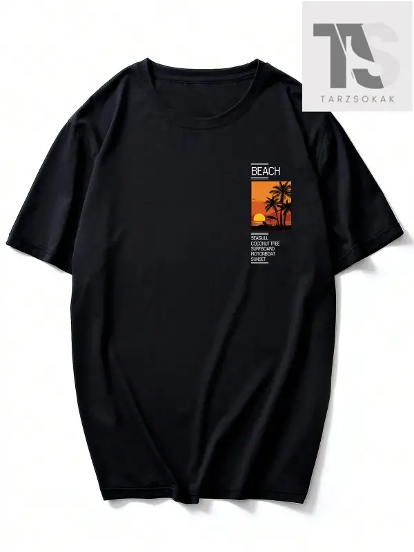 RSRT Erkek Hindistan Cevizi Ağacı ve Slogan Grafikli Tişört