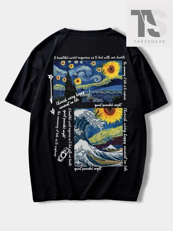 Street Life Erkek Slogan & Ayçiçeği Baskılı Tişört