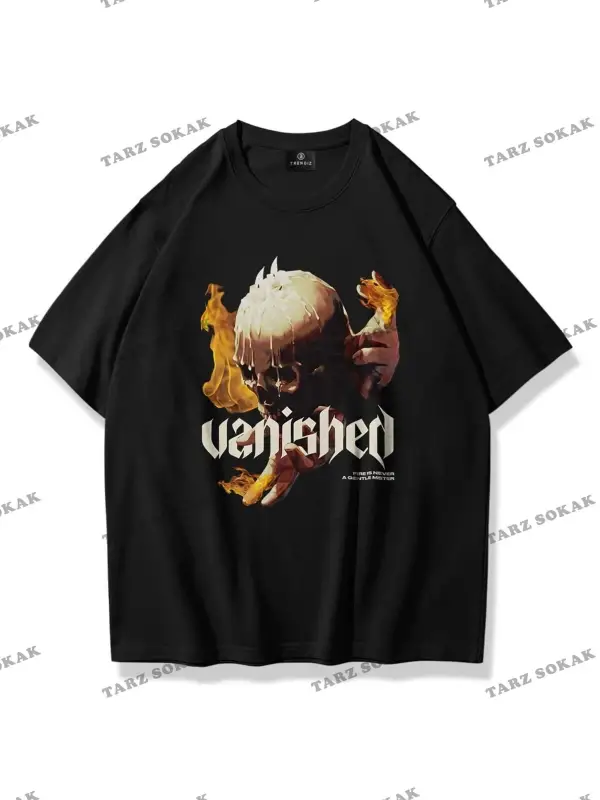 Goth Erkek Harfli ve Şekilli Grafik Tişört