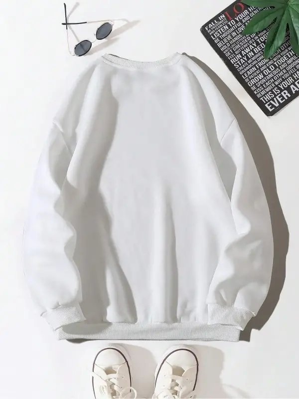 Letter Graphic Drop Shoulder Sweatshirt Beyaz