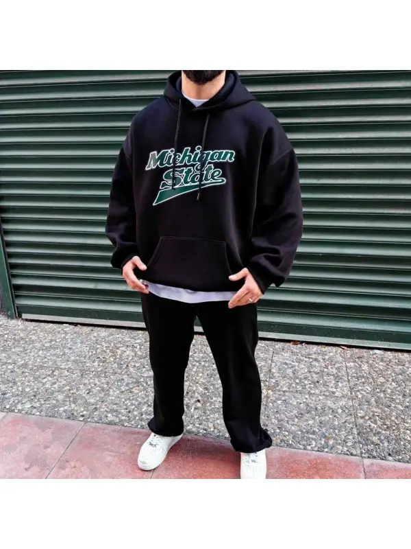 Unisex Erkek/Kadın MİCHİGAN Renkli Özel Baskılı Oversize Kapüşonlu Sweatshirt Siyah