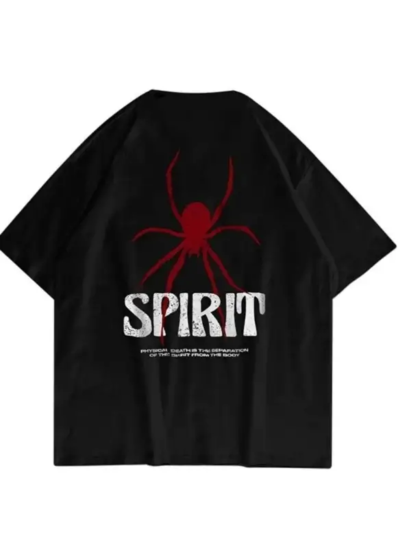 Siyah Oversize Spirit Baskılı Pamuklu Unisex Tshirt
