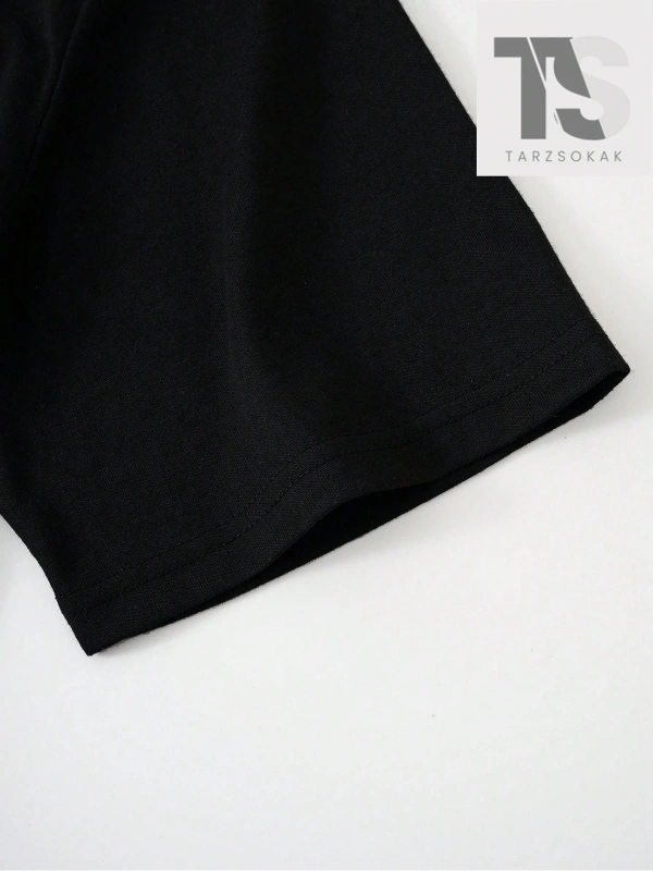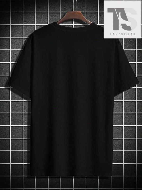 Hypemode Erkek Siyah Örme Yuvarlak Yaka Kısa Kollu Tişört