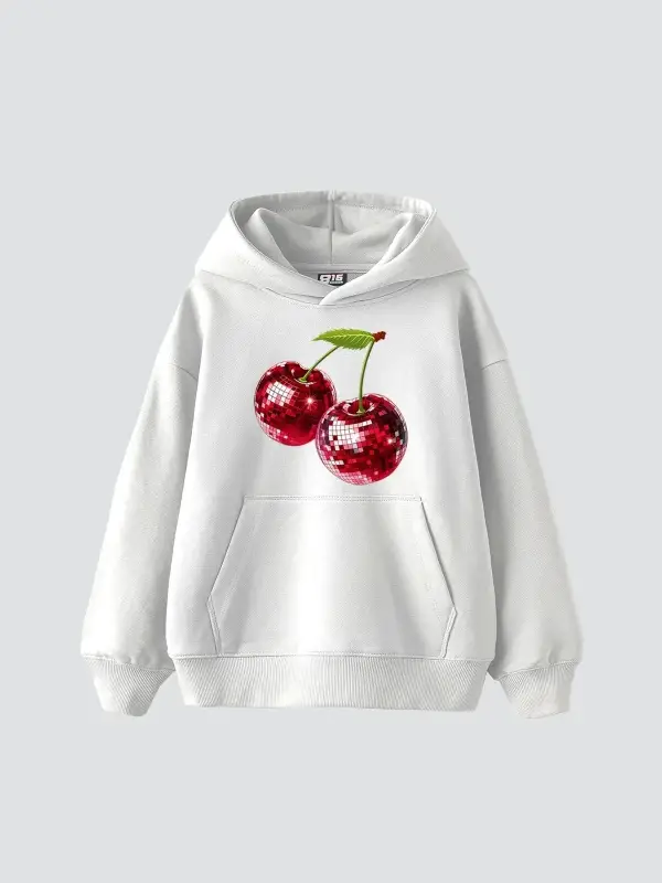 Disco Cherry Baskılı Oversize Unisex Beyaz