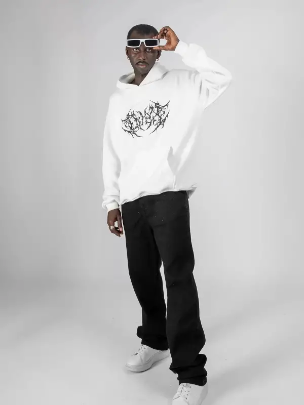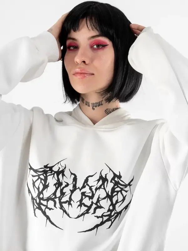 Metro Beyaz Oversize Unisex Kapüşonlu Sweatshirt Hoodie