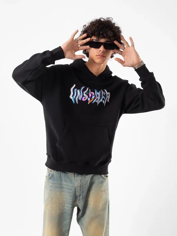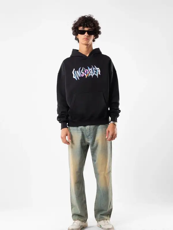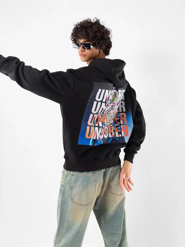 Just Try Siyah Oversize Unisex Kapüşonlu Sweatshirt Hoodie