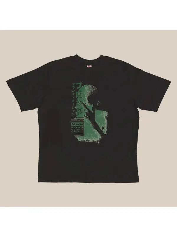 Siyah Örme Ejderha Desenli Yuvarlak Yaka Bol Tişört