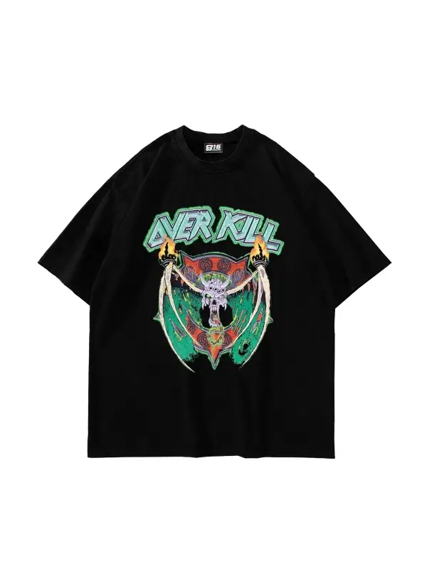 KOD Trend EMRG Loose Fit Erkek Grafik Grafik Düşük Omuz Tişört