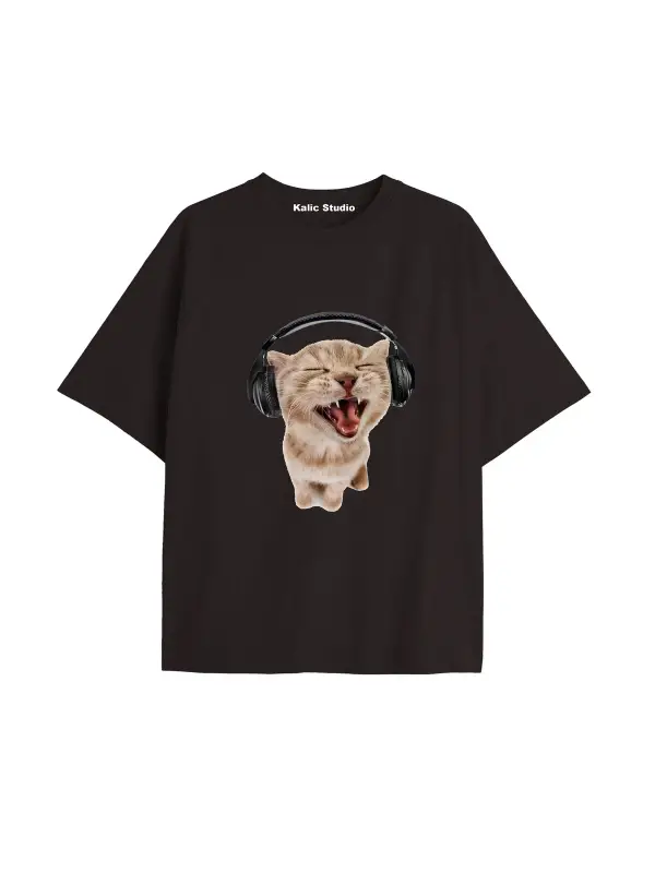 Y2k vintage Cats Baskılı Sİyah T-shirt KOD 36