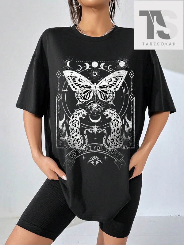 Şekil Ve Slogan Grafiği Düşük Omuz Oversize Tişört
