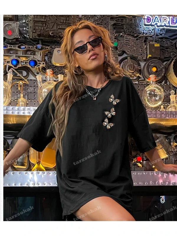 Harfli Grafik Düşük Omuz Oversize Tişört