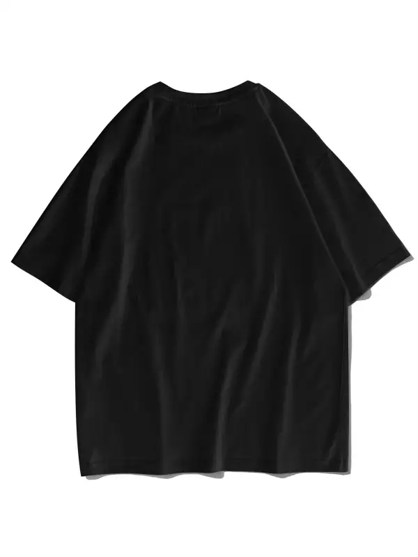 Erkek Siyah Danger Bear Baskılı Oversize Bisiklet Yaka T-shirt
