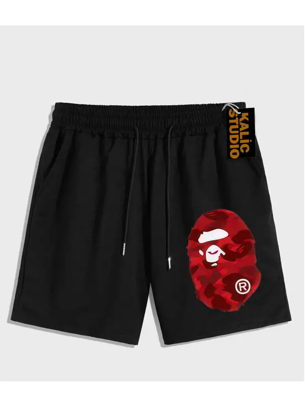 UNİSEX Bay Bape Desenli Siyah Yazlık ŞORT