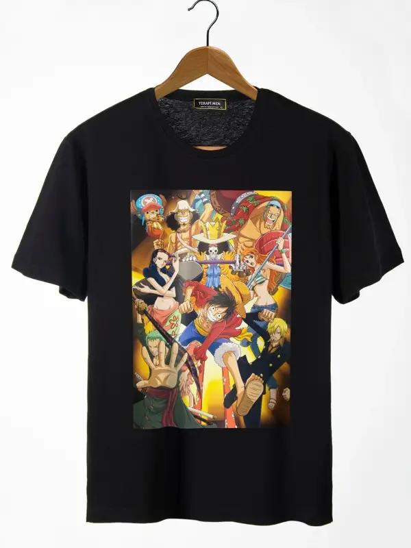 Unisex Siyah Önü Anime Baskılı Oversize Pamuklu