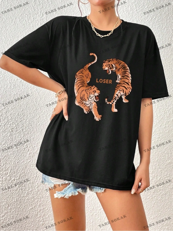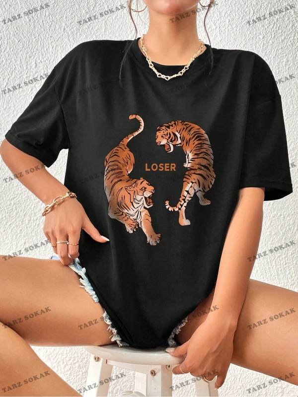 Siyah Rus senaryo бесие Prints baskılar Tees gevşek sı