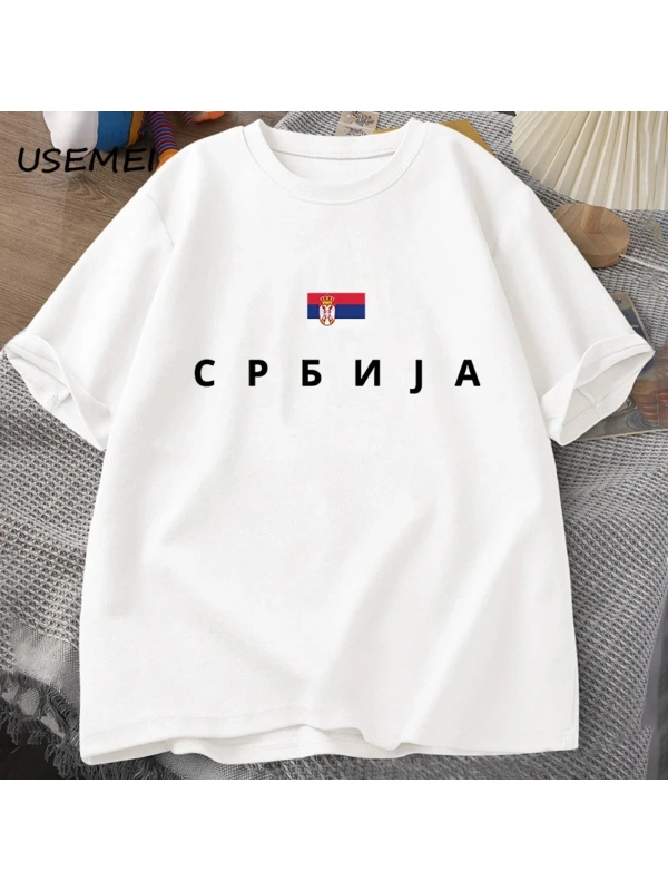 Sırbistan bayrağı T-shirt erkekler pamuk kısa kollu Tshirt erkek T shirt grafik Tees üst yaz 2824