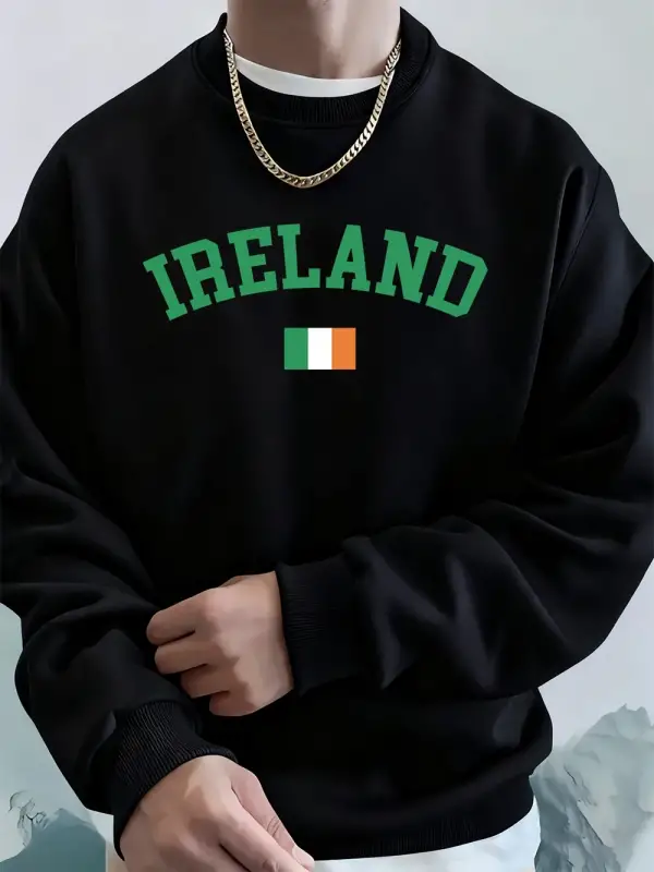 İrlanda Bayrağı Baskılı Erkek Sweatshirtleri Kışlık Bisiklet Yaka Kapüşonlu Sokak Stili Polar