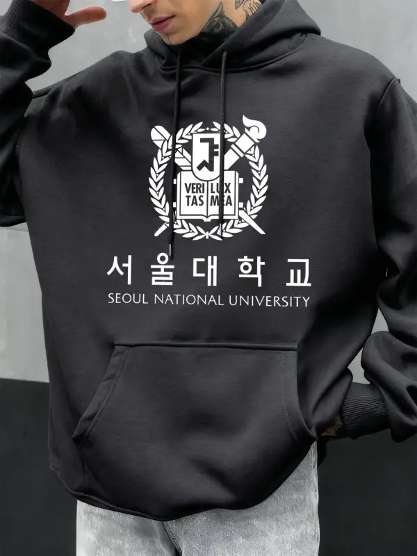 Seul Ulusal Üniversitesi Baskılı Hoody Erkekler Büyük Boy Polar Rahat Kapüşonlular Sonbahar H
