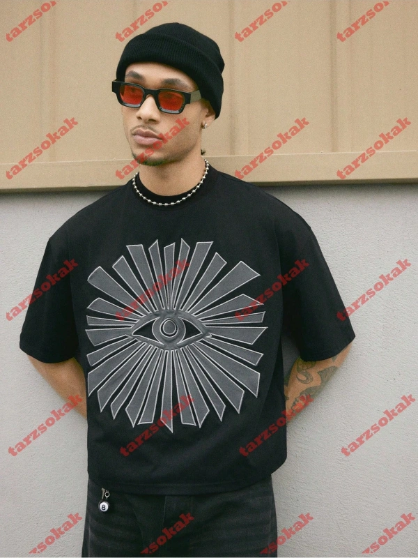 Unisex Erkek/Kadın TARZ Renkli Özel Baskılı Oversize Kısa kollu bisiklet yaka t-shirt