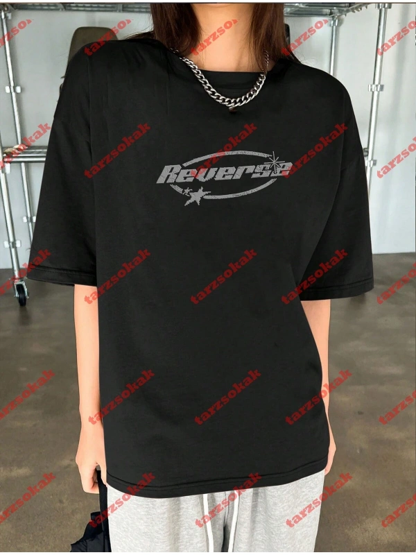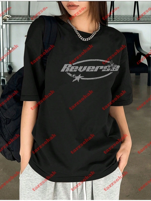 Y2k Starz Baskılı Oversize Unisex Kısa kollu bisiklet yaka t-shirt