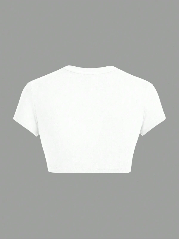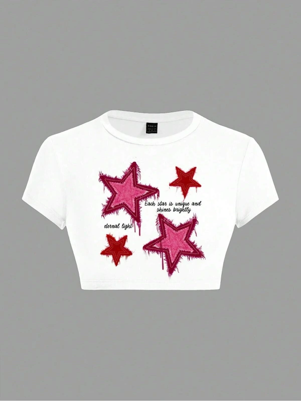 Yıldız Grafikli Yuvarlak Yaka Kısa Kollu Crop