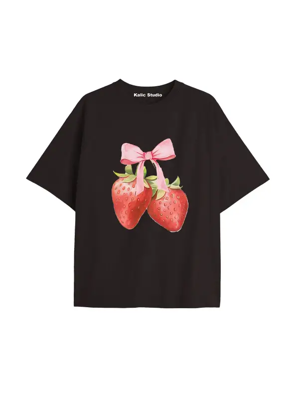Y2k vintage Cherry Baskılı Sİyah T-shirt KOD 87