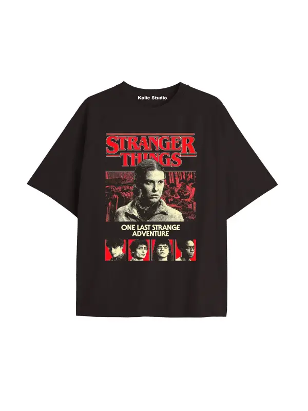 Stranger Things Baskılı oversize ünisex t-shirt siyah