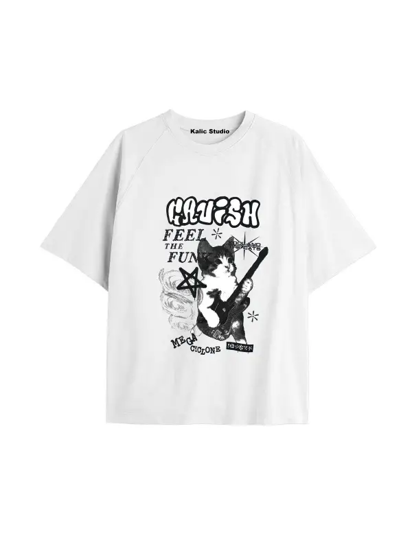 Y2k vintage Cats Baskılı Beyaz T-shirt KOD 11