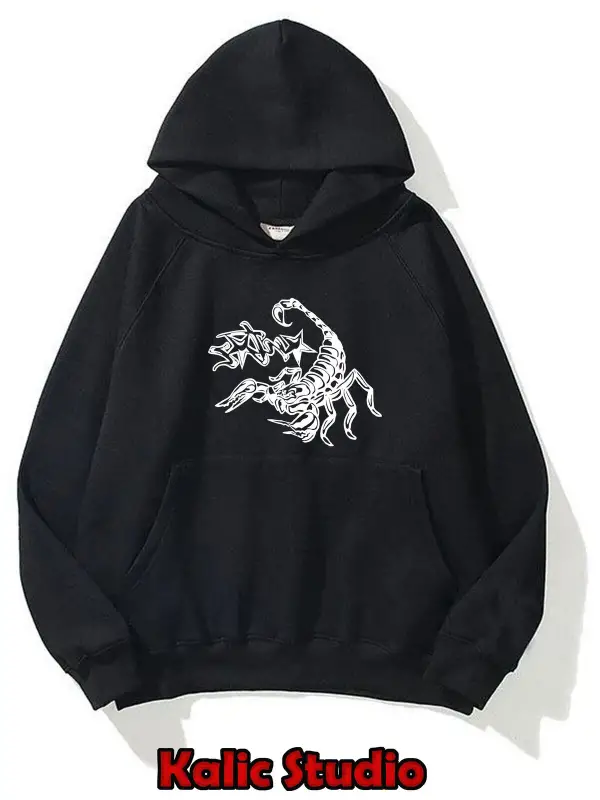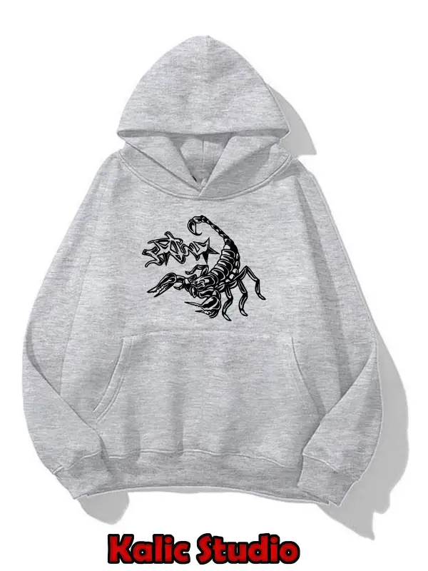 Crtz akrep baskılı ünisex kapüşonlu sweatshirt gri