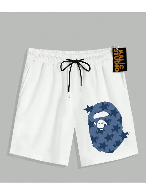 UNİSEX Bay Bape Desenli Beyaz Yazlık ŞORT