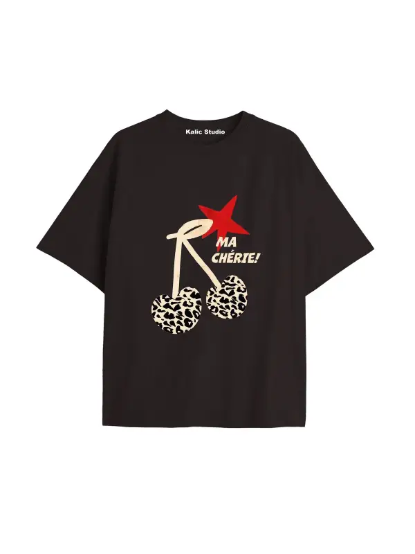 Y2k vintage Cherry Baskılı Sİyah T-shirt KOD 91