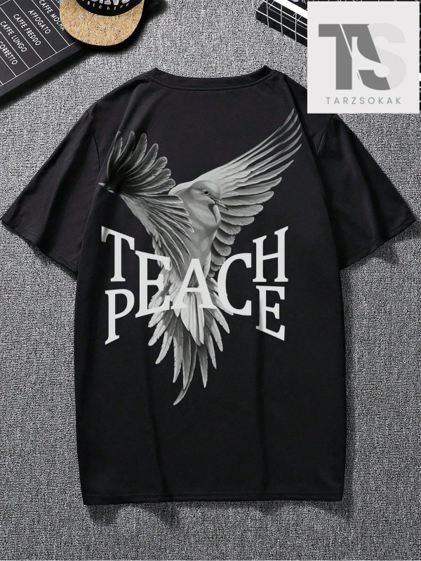 Erkek Slogan Baskılı Kısa Kollu Tişört