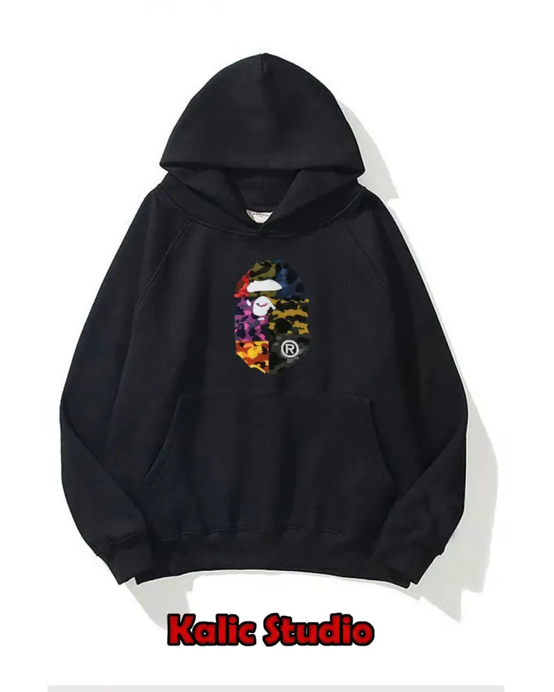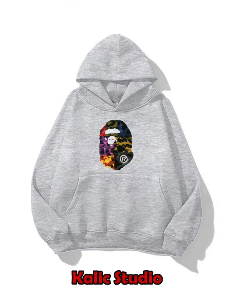 - Her mevsim rahatlıkla tercih edilebilen, unisex tasarımıyla hem kadınların hem de erkeklerin gardırobunda yerini alacak.; - Günlük kullanım için ideal olan bu sweatshirt, kanguru cep detayı ile pratiklik sunar.; - 30 derecede ters yıkama önerisiyle uzun ömürlü kullanım vaat eder.; - Tekli paket içeriği sayesinde kolayca satın alınabilir ve hemen kullanılmaya hazır hale gelir.; - Genç yaş grubuna hitap eden dinamik ve modern görünümüyle dikkat çeker.; - Dokuma kumaş tipi, dayanıklılığı artırırken şık bir duruş sergiler.; - %100 pamuk materyali cildinizle dost dokunuşlar sağlar ve nefes alabilir yapıdadır.; - Uzun kollu tasarım soğuk günlerde ekstra koruma sunarken, şardonlu dokusu konforlu bir deneyim vaat eder.; - Kapüşonlu yaka tipi hem stil sahibi görünüm kazandırır hem de başınızı soğuktan korur.; - Dijital baskı teknolojisi ile üretilmiş Bape deseniyle trendleri takip eden stil sahibi bireylere hitap eder.; - Uzun kol boyu mevsimsel geçişlerde ideal sıcaklıkta tutar; ne çok sıcak ne de çok soğuk hissettirmeden konfor sağlar.