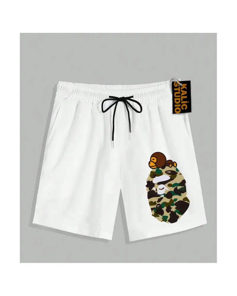UNİSEX Bay Bape Desenli Beyaz Yazlık ŞORT