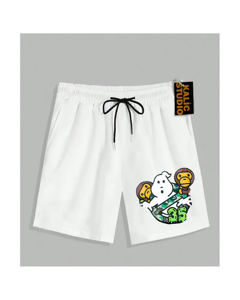 UNİSEX Bay Bape Desenli Beyaz Yazlık ŞORT