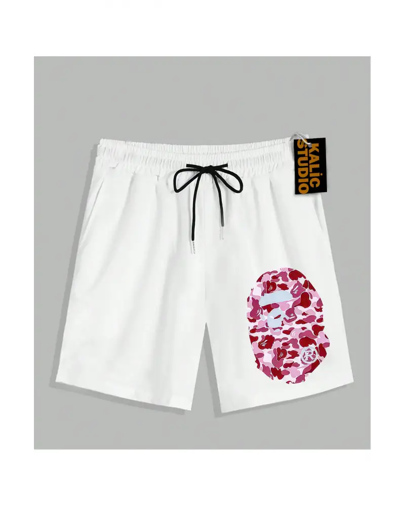 UNİSEX Bay Bape Desenli Beyaz Yazlık ŞORT