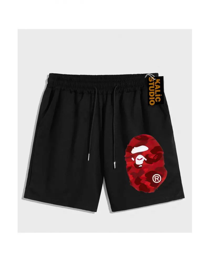 UNİSEX Bay Bape Desenli Siyah Yazlık ŞORT