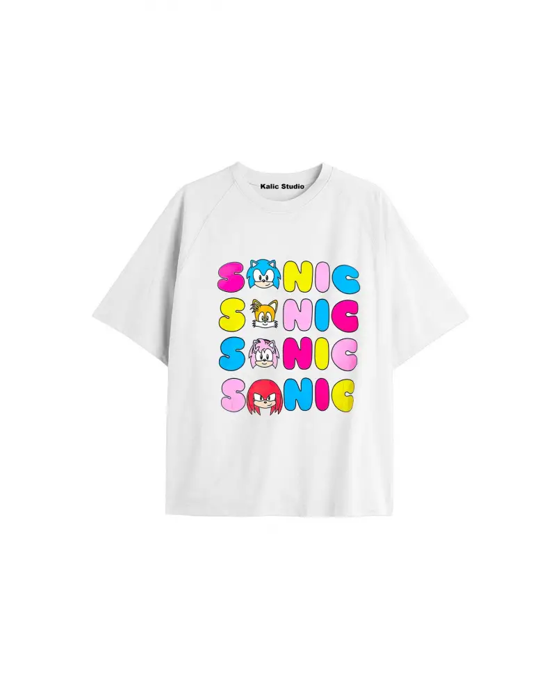 UNİSEX Bay Sonic Desenli Beyaz Yazlık T-shirt