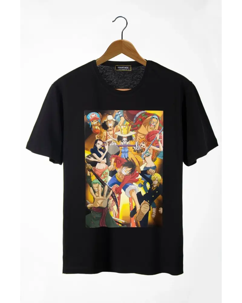 Unisex Siyah Önü Anime Baskılı Oversize Pamuklu