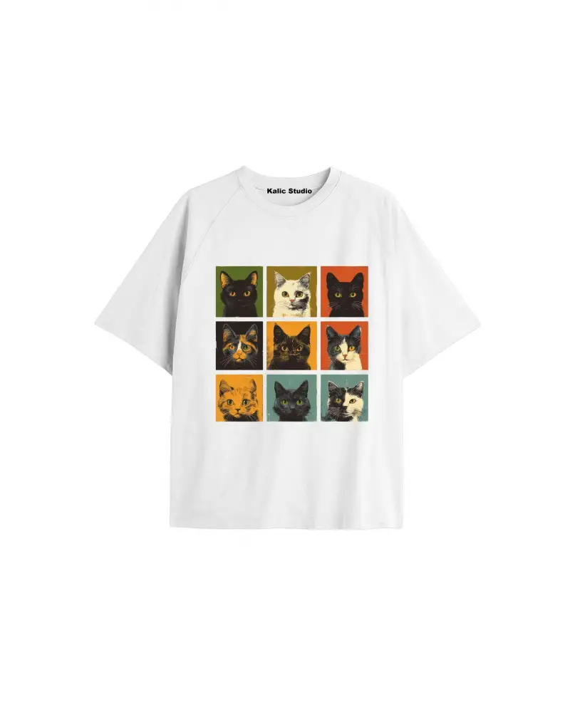 Y2k vintage Cats Baskılı Beyaz T-shirt KOD 11