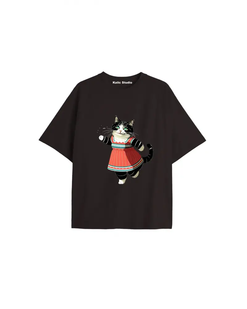 Y2k vintage Cats Baskılı Sİyah T-shirt KOD 26