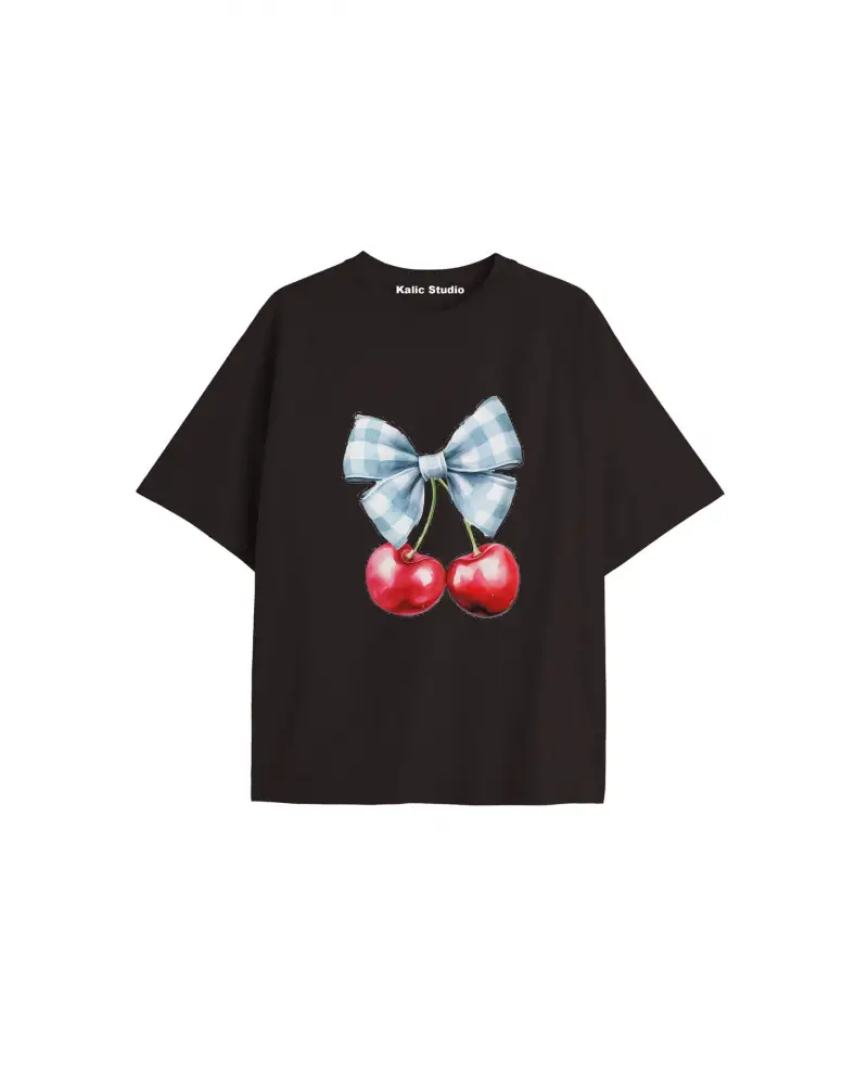 Y2k vintage Cherry Baskılı Sİyah T-shirt KOD 102